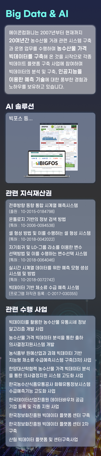홈페이지 구축 : 통합홈페이지·관리자 페이지 개선 및 빅데이터 기반 분석 서비스 제공